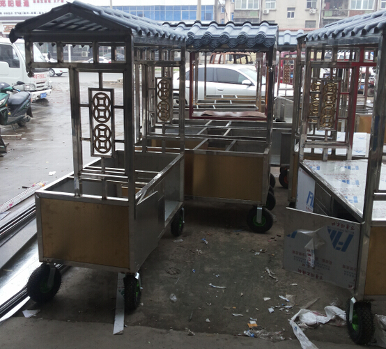 中南不銹鋼加工廠專業設計與制作:南陽小吃推拉車,充滿了歷史文化氣息,突顯了特色的古都南陽,成為我市美化南陽的一大亮點。