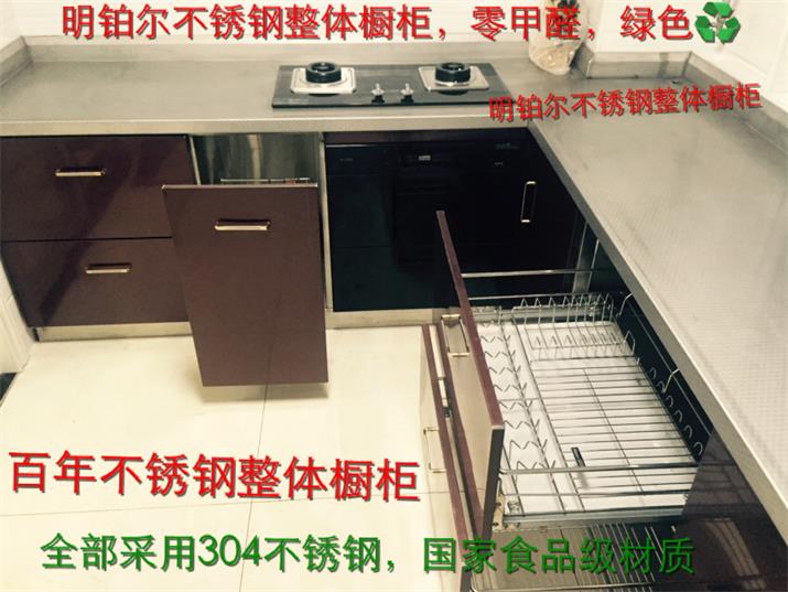 明鉑爾?不銹鋼櫥柜有很多的優點,屬于國家食品級材質,經久耐用,可以使用100年,不變形,不褪色,不怕水,不【怕火,