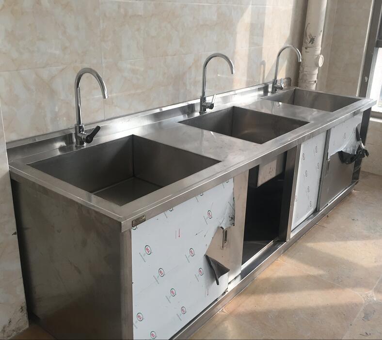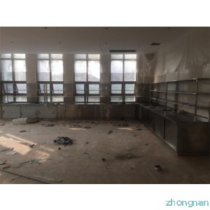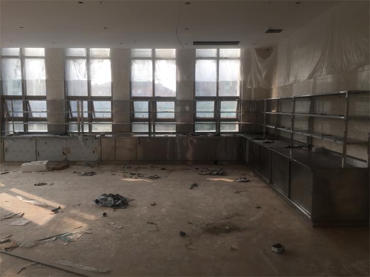 信陽宏信國際大酒店定制設計-不銹鋼備餐柜。采用304立方體臺面,單獨每套分割開,上置不銹鋼層架,方便放餐盤。衛生,潔凈,SUS304食品級,可以使用一百年,不變形,不發脹,不褪色。