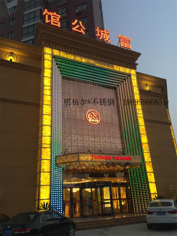 唐河富城公館國(guó)際會(huì)所設(shè)計(jì)定制明鉑爾?不銹鋼藝術(shù)屏風(fēng),雕花,造型,旋轉(zhuǎn)門工程