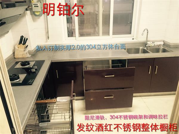 明鉑爾不銹鋼櫥柜,零甲醛,不怕水,不怕火,不變形,可以使用100年,售后無憂,德國五金,304食品級材質,集成灶一體,為您和家人健康保駕護航!