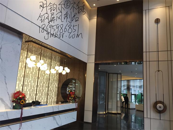 不銹鋼藝術屏風隔斷造型,明鉑爾不銹鋼藝術工程,南陽青楓苑售樓中心,深圳香港設計大師,國際藝術標準設計,