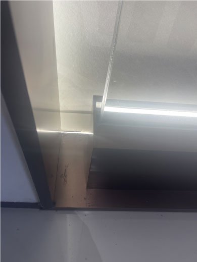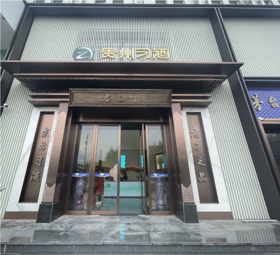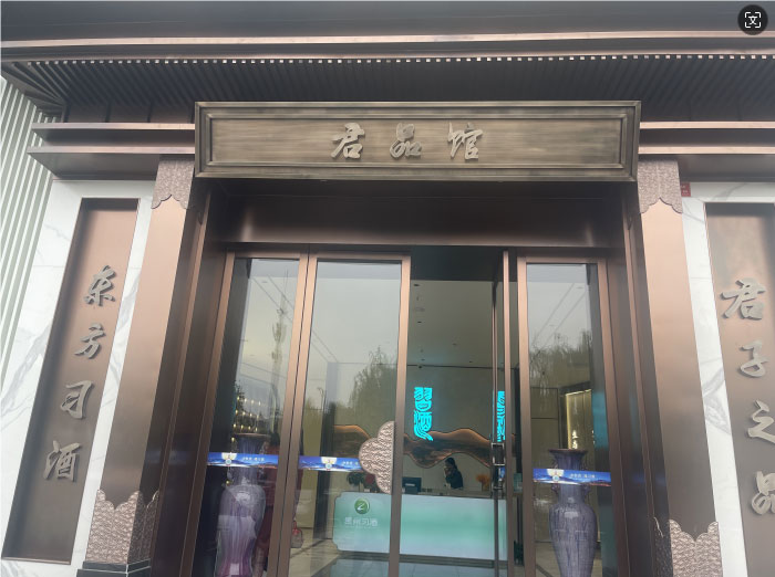 大門整體使用不銹鋼材質,八個不銹鋼字耐磨耐曬耐腐蝕,地拉彈簧門上放棄使用傳統拉手,改用定制云紋拉手,使得大門的質感更上一層樓。