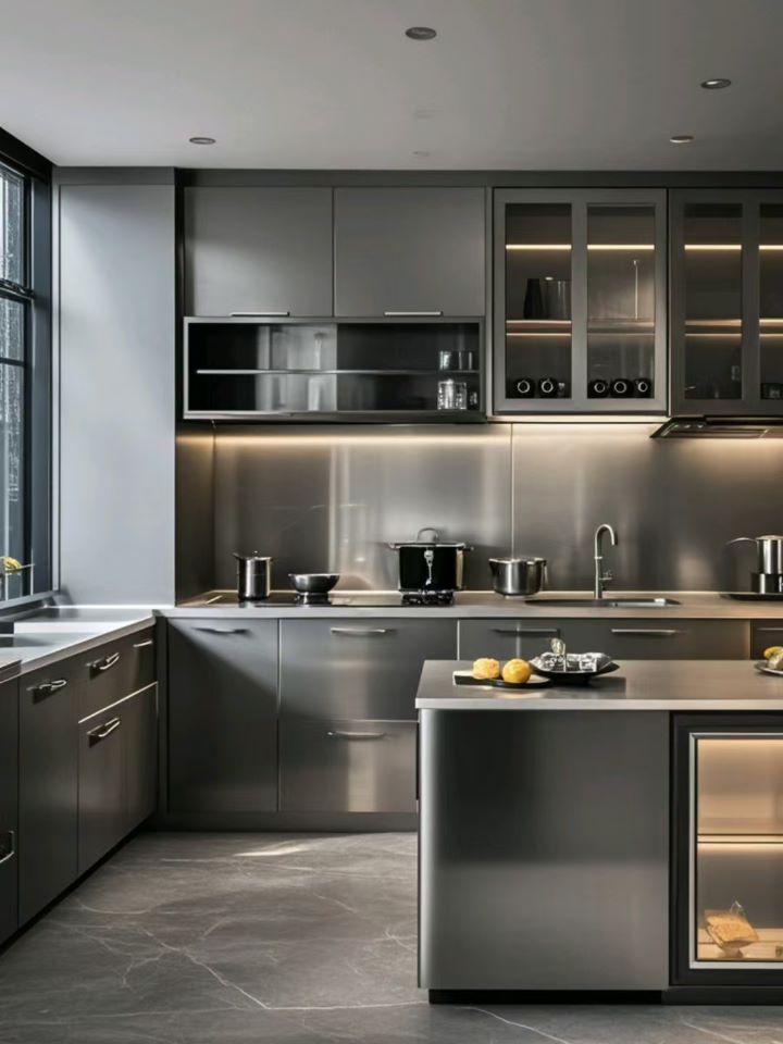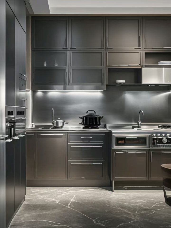 - 結合了不銹鋼櫥柜的耐用性和多種功能模塊,如烤箱、洗碗機、微波爐等嵌入式電器。